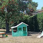 Gästerna kan använda matplats utomhus och mathörna med te-/kaffebryggare. Det finns också vattenkokare, kylskåp och ugn i köket.